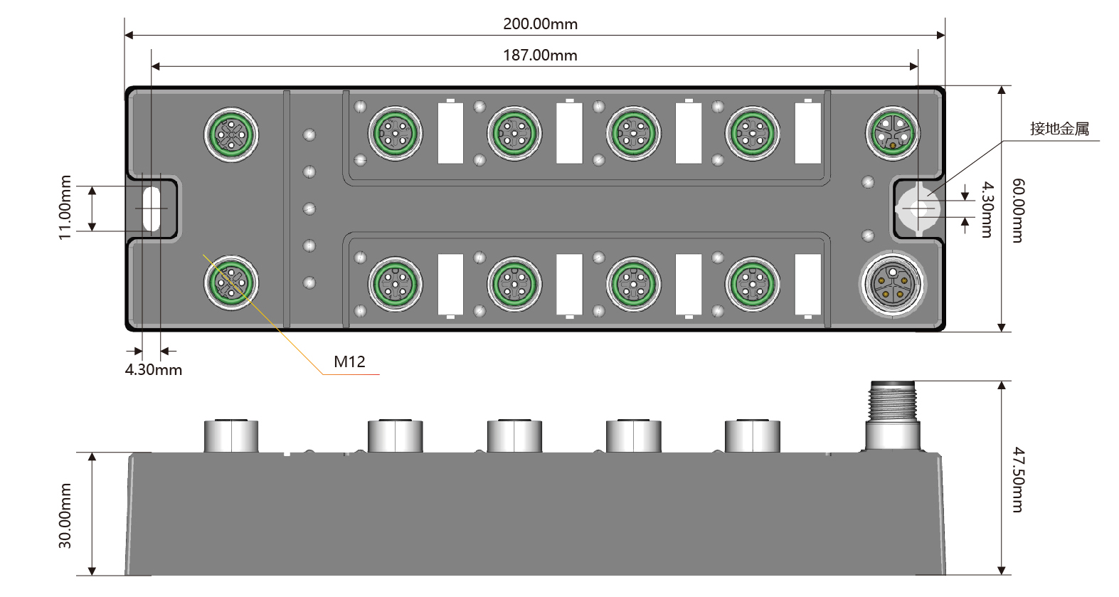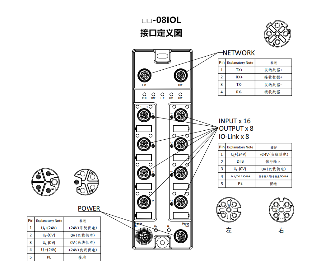 IO-Link接口:8×M12,A-Code,5P孔