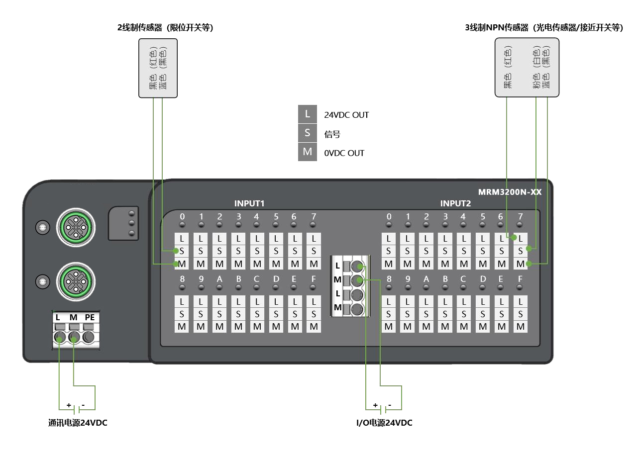 電源接口:模塊供電:3P歐式彈簧端子;負載供電:4P歐式彈簧端子