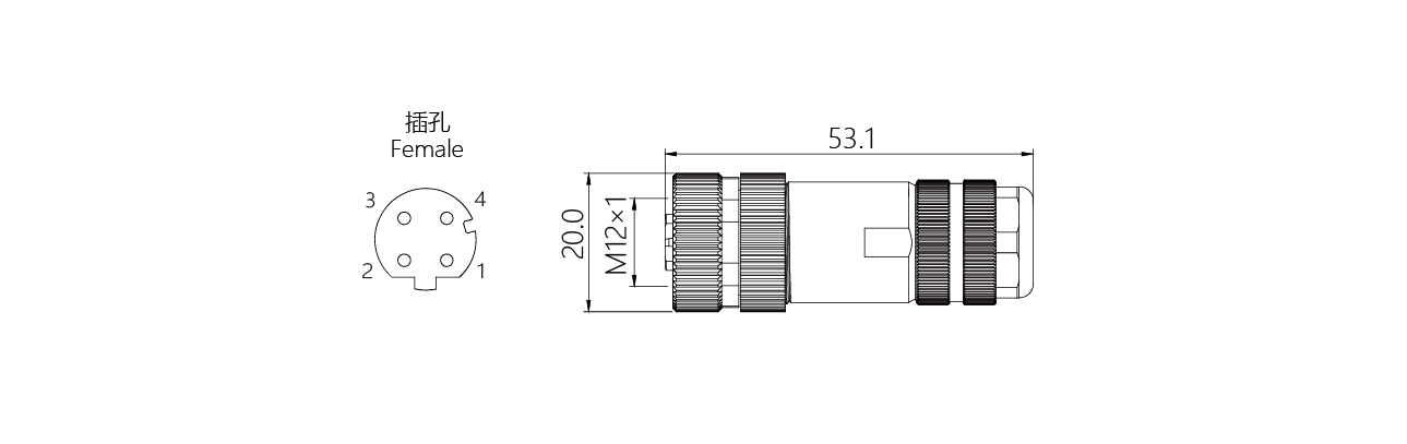 規(guī)格描述:M12連接器,直型孔,螺釘接線,D-Code,全金屬