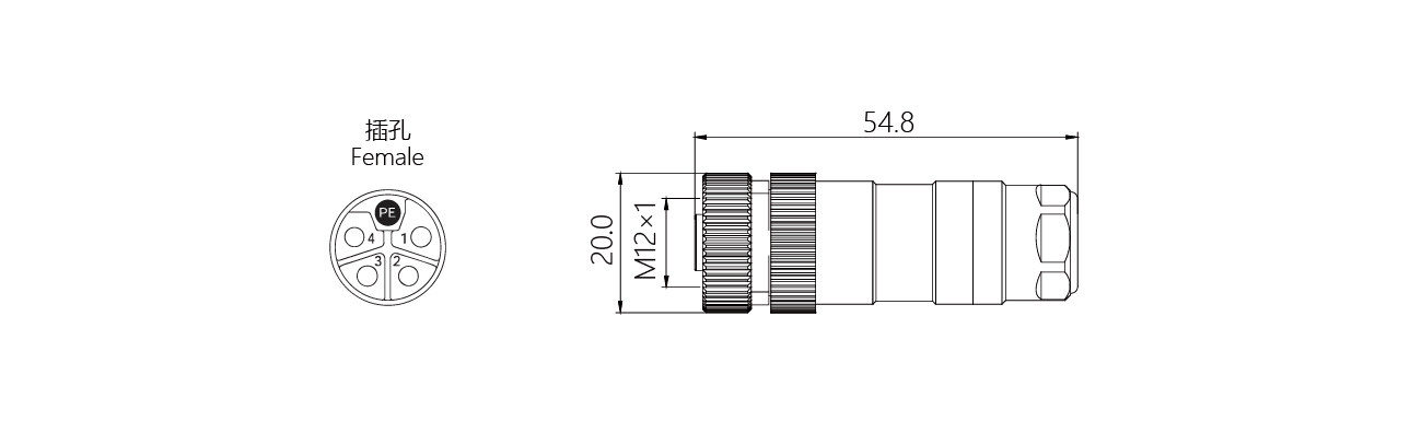 規(guī)格描述:M12連接器,直型孔,螺釘接線,L-Code